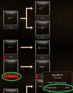 Chaque fois que vous tirez avec votre arme, vous gagnez 3% si vous avez fait au moins un coup critique, 1% si aucun coup critique et au moins un raté, et 2% en temps normal. Les bonus se rapportent aux caractéristiques de votre arme.